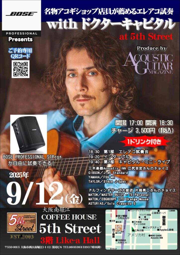 9月12日(金) *EVENT* 「Bose Presents 名物アコギショップ店員が薦めるエレアコ試奏 with ドクターキャピタル」 in OSAKA